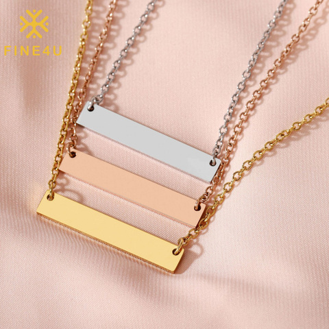 Name Personalised Gold Plated Engraved Blank Custom Jewelry Stainless Steel Horizontal Bar Necklace